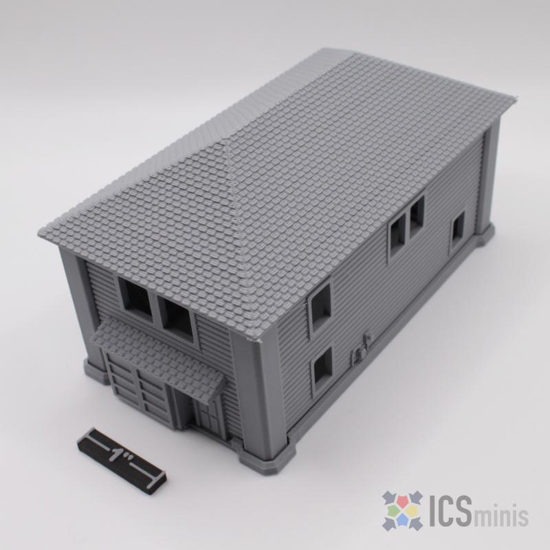 A detailed scale model of a two-story residential home featuring a single car garage with a left-side doorway. Designed for use in emergency response and tactical training scenarios, this model adds realism with accurate architectural details and a magnetic base for secure positioning in any setup.